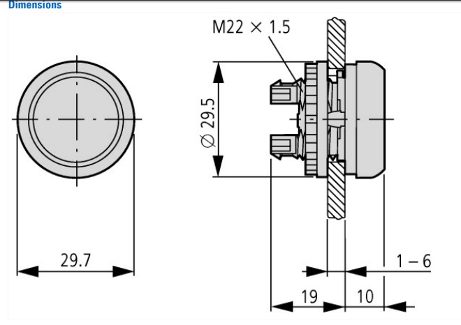 BOTÓN PULSADOR COMPLETO SIN RETENCIÓN MODELO M22-D-R-K01-BVP